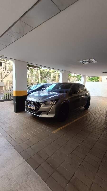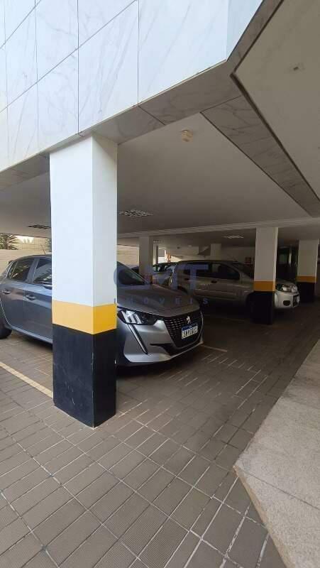 A vaga de garagem é coberta, livre e demarcada.