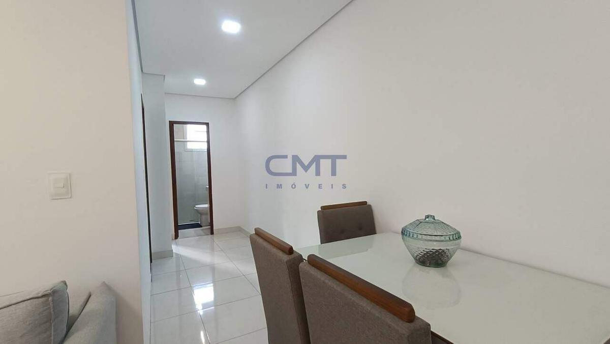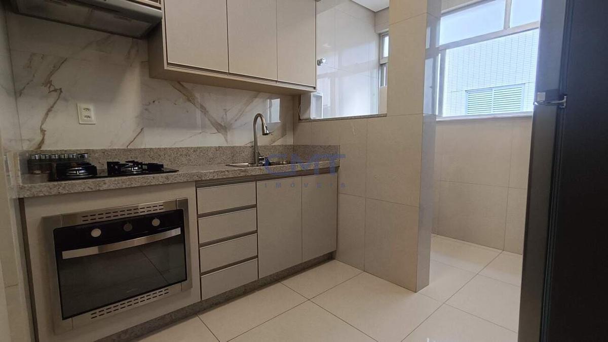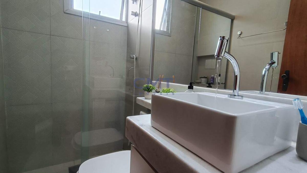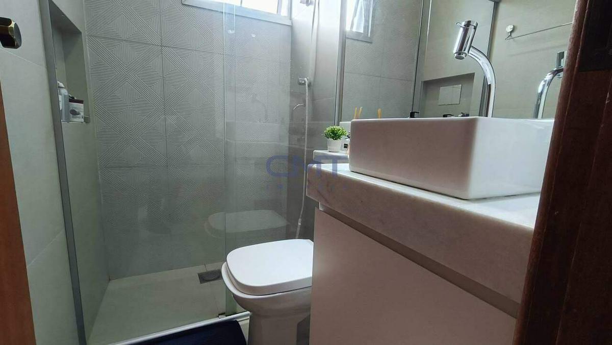 O piso de todo o apartamento é de porcelanato. Banheiro com box de blindex, armário e bancada em mármore. Cozinha com armários e bancada em granito.