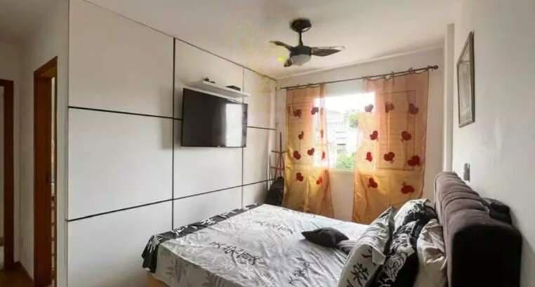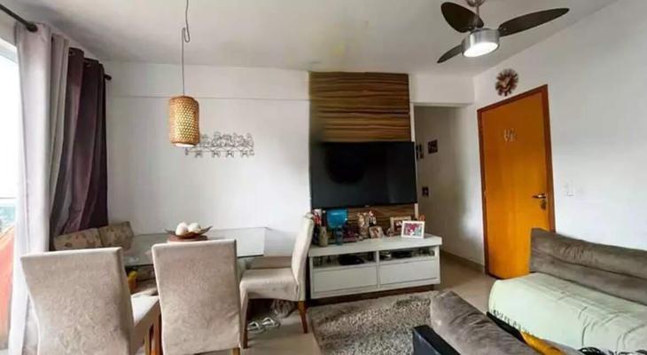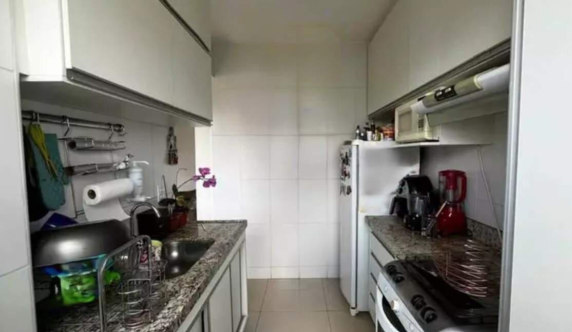 Sala ampla com piso em porcelanato, varanda integradas, 02 quartos confortáveis com armários sendo 01 suite, banheiro social, cozinha espaçosa com armários planejados e bancadas em granito, área de lavanderia independente. Banheiros com espelho, armário e box em blindex