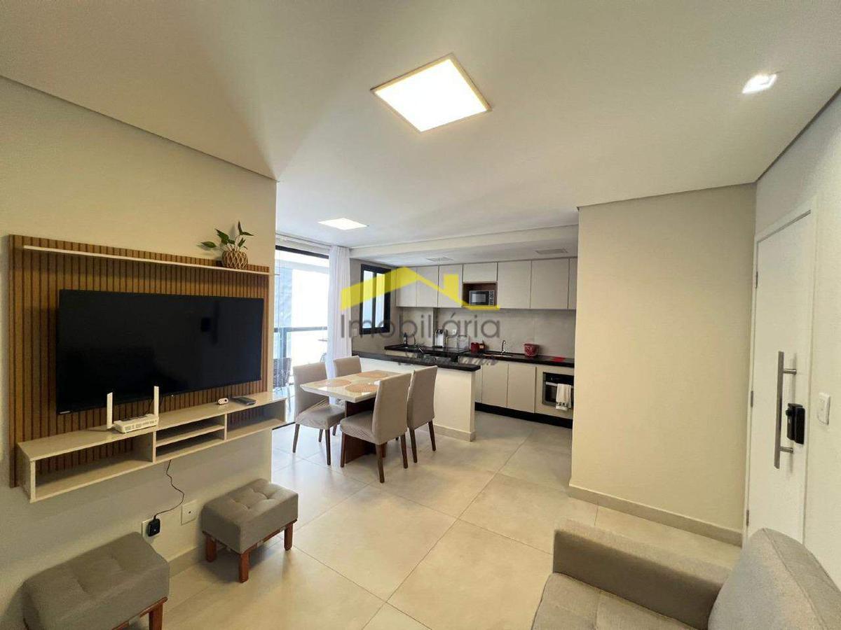 O imóvel possui 2 quartos, ambos suítes, com piso em vinílico, armários planejados, teto rebaixado em gesso e iluminação planejada. Os banheiros contam com acabamento em porcelanato, bancada em granito, armários planejados, blindex e iluminação cuidadosamente projetada. A sala para 2 ambientes apresenta piso em porcelanato, teto rebaixado e acesso a uma charmosa varanda gourmet. Cozinha americana funcional com bancada em granito, armários planejados e integração com a área de serviço.