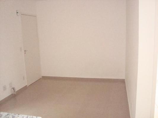 Sala, cozinha e banheiro com piso em porcelanato