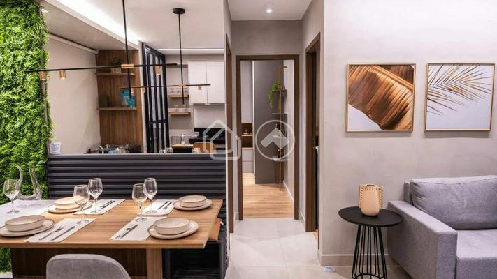 O apartamento conta com 2 quartos, sendo 1 suíte, banheiro social, cozinha, área de serviço, sala de estar e jantar integradas e varanda, proporcionando conforto e praticidade no dia a dia.