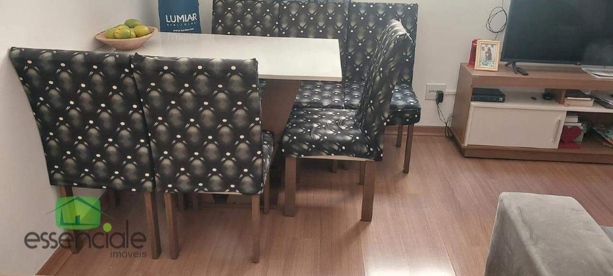 Apartamento de sala para 2 ambientes, cozinha com armários área de serviço conjugada, 02 quartos, 01 banho social.Piso da cozinha e banheiro em cerãmica. Piso laminado de madeira nos quartos e sala em ótimo estado, 01 vaga de estacionamento, portaria 24 hs.Òtima localização no bairro. Aceita financiamento e uso de fgts.
