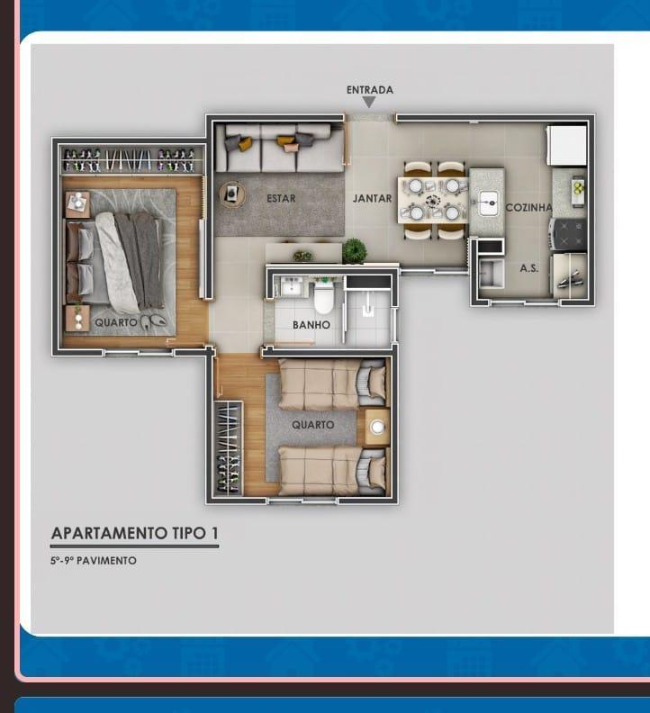 Apartamento 2 quartos sala para dois ambientes varanda. cozinha estilo americana.