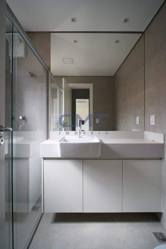 2 amplos banhos, os dois suítes. Ambos com piso em porcelanato, bancada em nanoglass com cuba sobreposta e box em blindex.