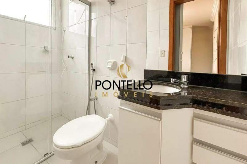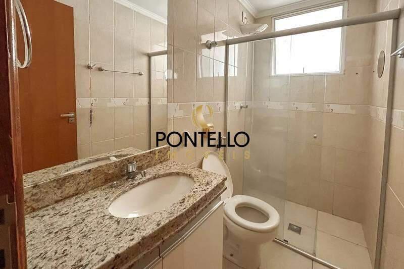 Banheiros (social e suíte) com excelente acabamento em cerâmica, armários, espelhos e box em blindex.