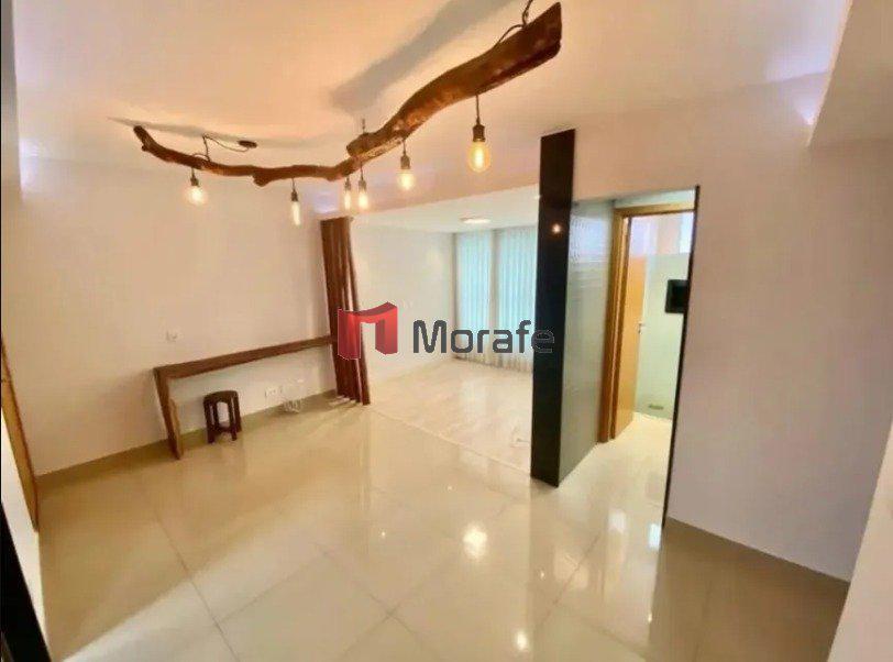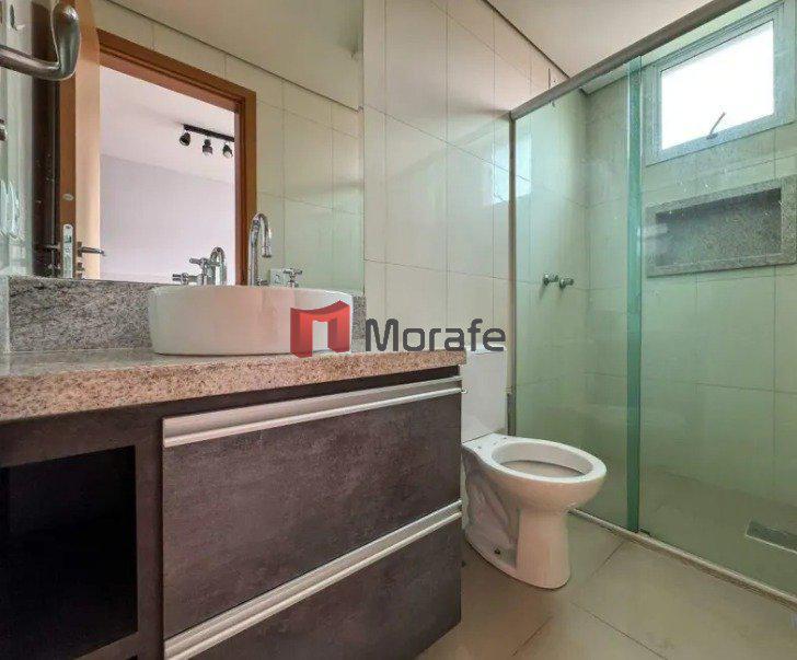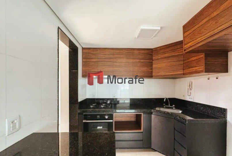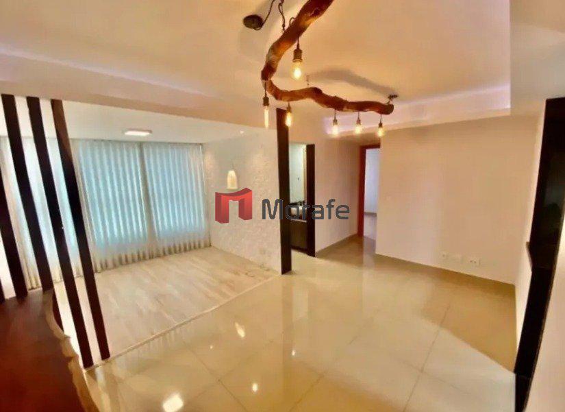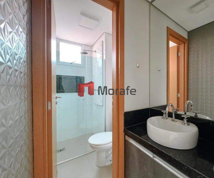 Apartamento espaçoso de 98 metros quadrados, com 2 quartos, sendo um deles uma suíte. Possui 2 banheiros, um lavabo. A sala e os quartos têm piso laminado, e a cozinha e os banheiros contam com piso de porcelanato.