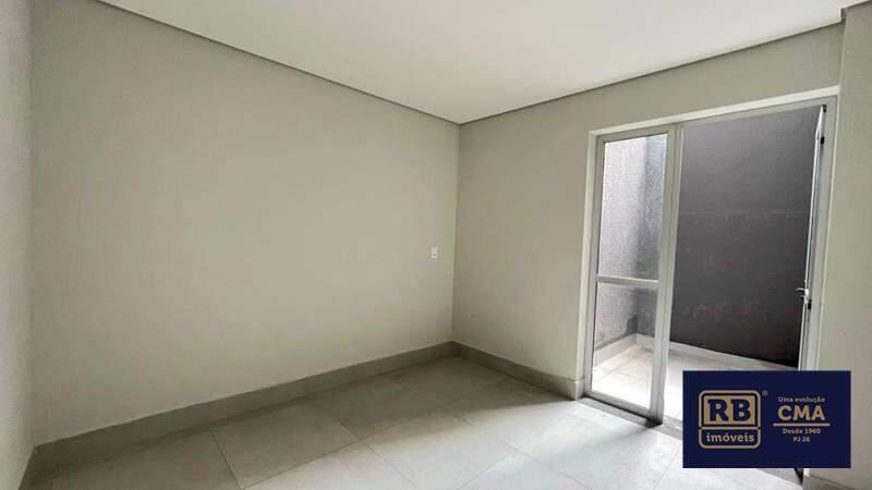 2 quartos com piso em porcelanato, sendo 1 suíte e outro com varanda.