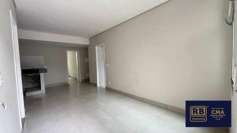 Sala para dois ambientes, com piso em porcelanato.