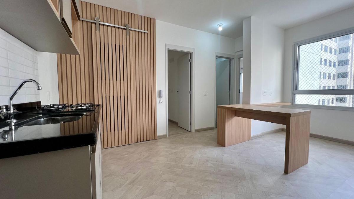 Apartamento 2 quartos 1 vaga Lourdes Belo Horizonte/MG.Apartamento com sol da manhã ,claro e arejado, área com 50 m², de 2 quartos com armários planejados sendo um com varanda, cozinha com cook top armários em cima e debixo da bancada em granito conjugada com a sala com uma bancada em madeira pra mesa de jantar, e um banheiro com box chuveiro e armario superior com espelho, imóvel com piso laminado, area de serviço vom um tanque e espaço para maquina de lavar fechada com um porta de correr ripada. Prédio novo e moderno, localizado próximo a faculdade de direito da UFMG, primeira locação. possui 2 elevadores, portaria 24 horas e sistema de monitoramento remoto, piscina, salão de festas e academia, espaço gourmet com churrasqueira ,gas e agua individual.