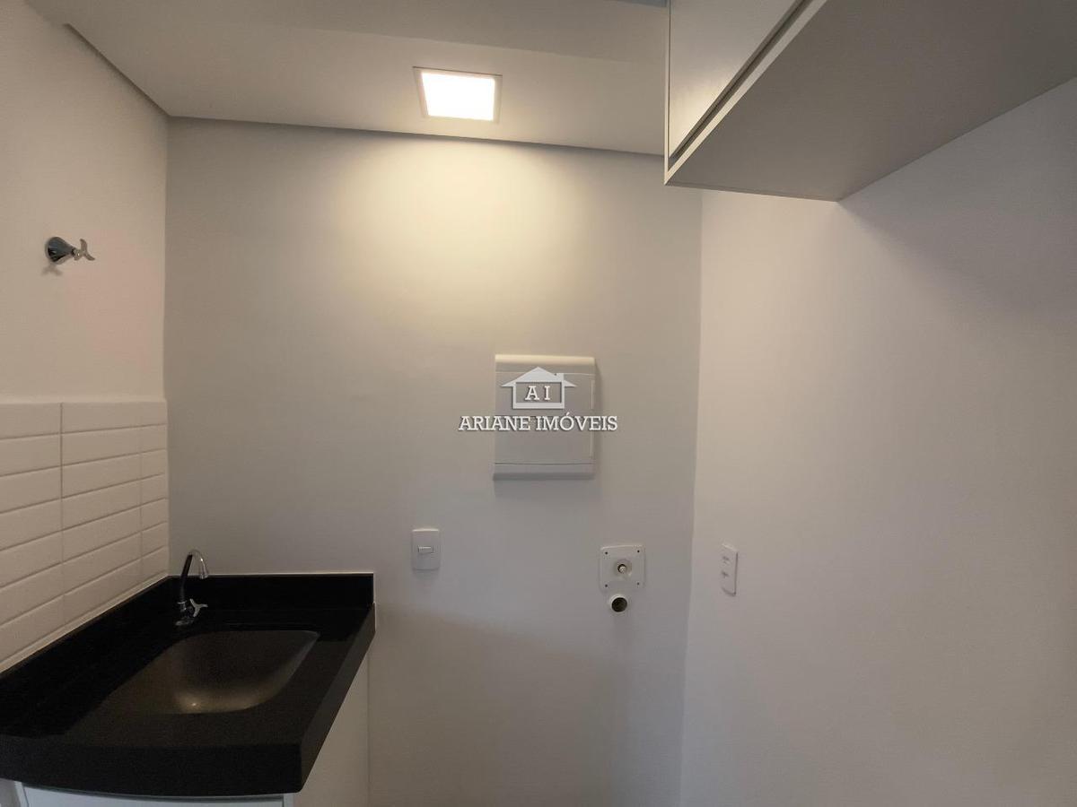 Sala conjugada com cozinha e lavanderia.
