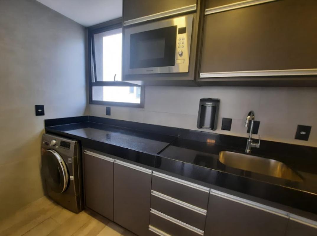 cadeiras, sala com projeto de iluminação, cortinas e máquina lava e seca na área de serviço,