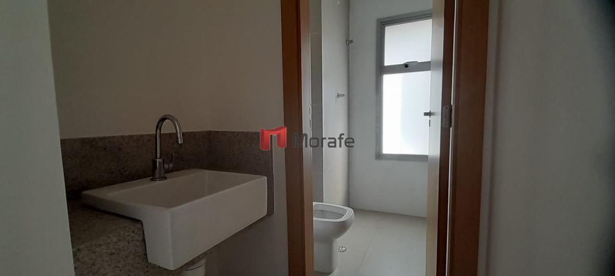 Apartamento novo com sala para 2 ambientes, piso em porcelanato ar condicionado; cozinha americana com piso em porcelanato, bancada em granito com armários, forno e fogão; área de serviço com bancada em granito com armários; lavabo; 03 banheiros sendo 01 lavabo e 02 suítes , piso em vinílico, armários. 02 vagas de garagem em linha.