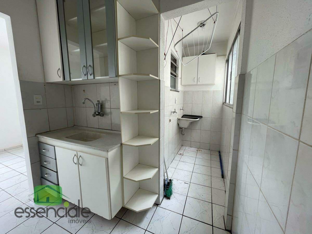 O imóvel conta com dois quartos com armários, piso em cerâmica em todo o apartamento, banheiro com armário, box em blindex e chuveiro, além de cozinha equipada com armários e coifa.