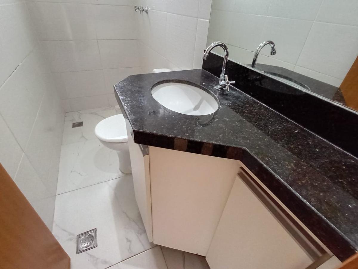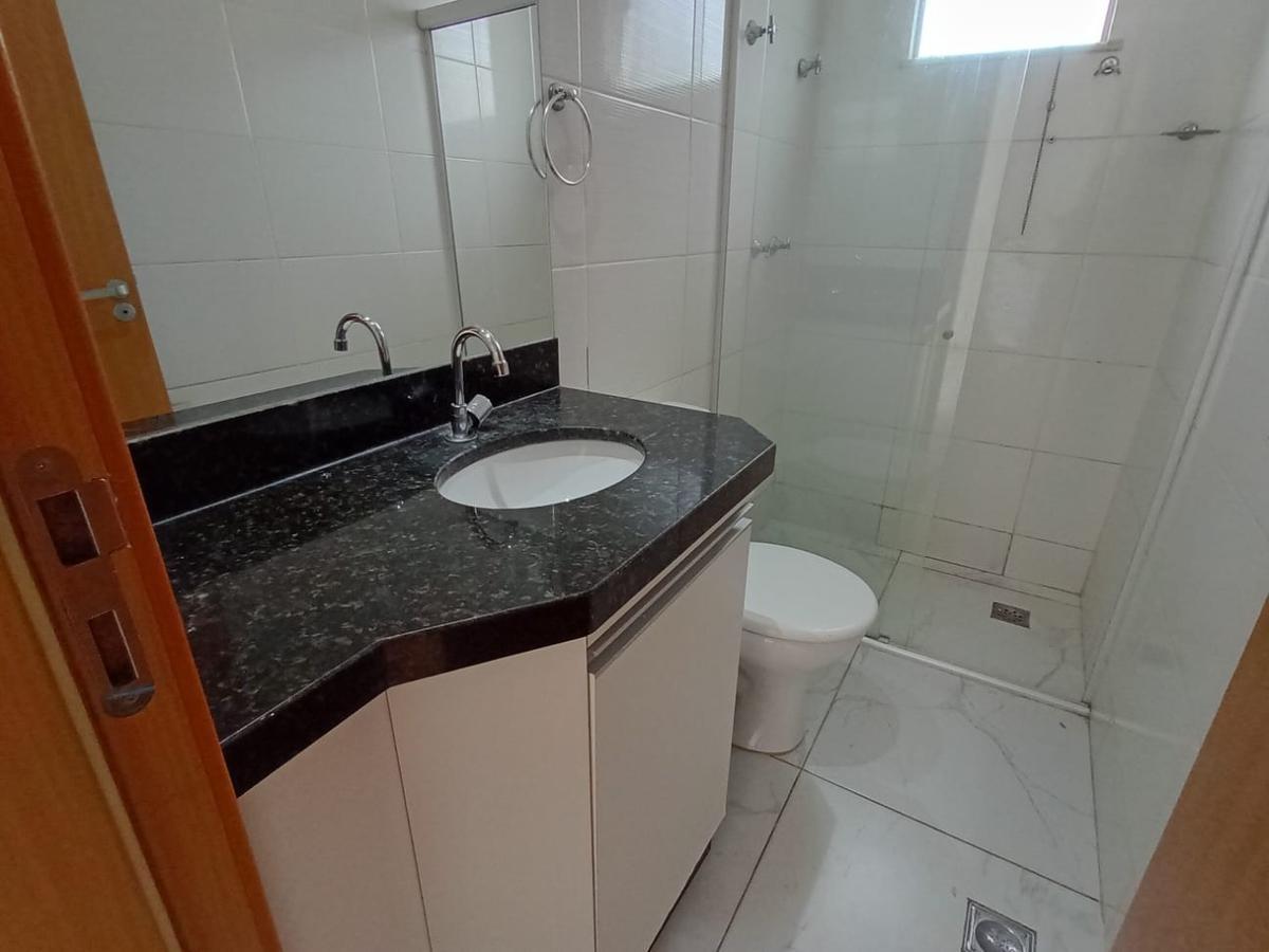 Banheiro social e banho da suíte com piso em porcelanato e bancada em granito;