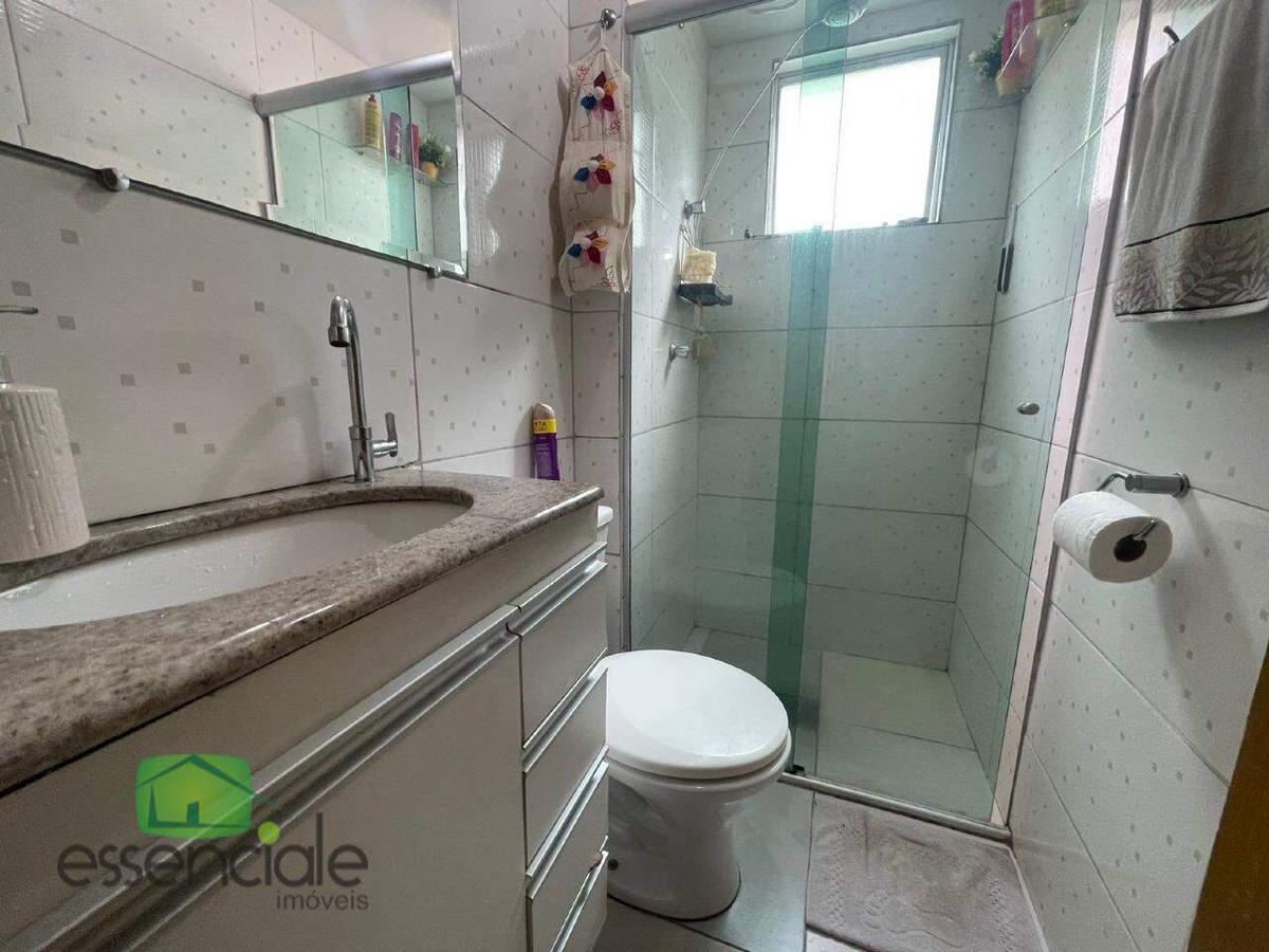 Banho social com blindex, armário e espelho.