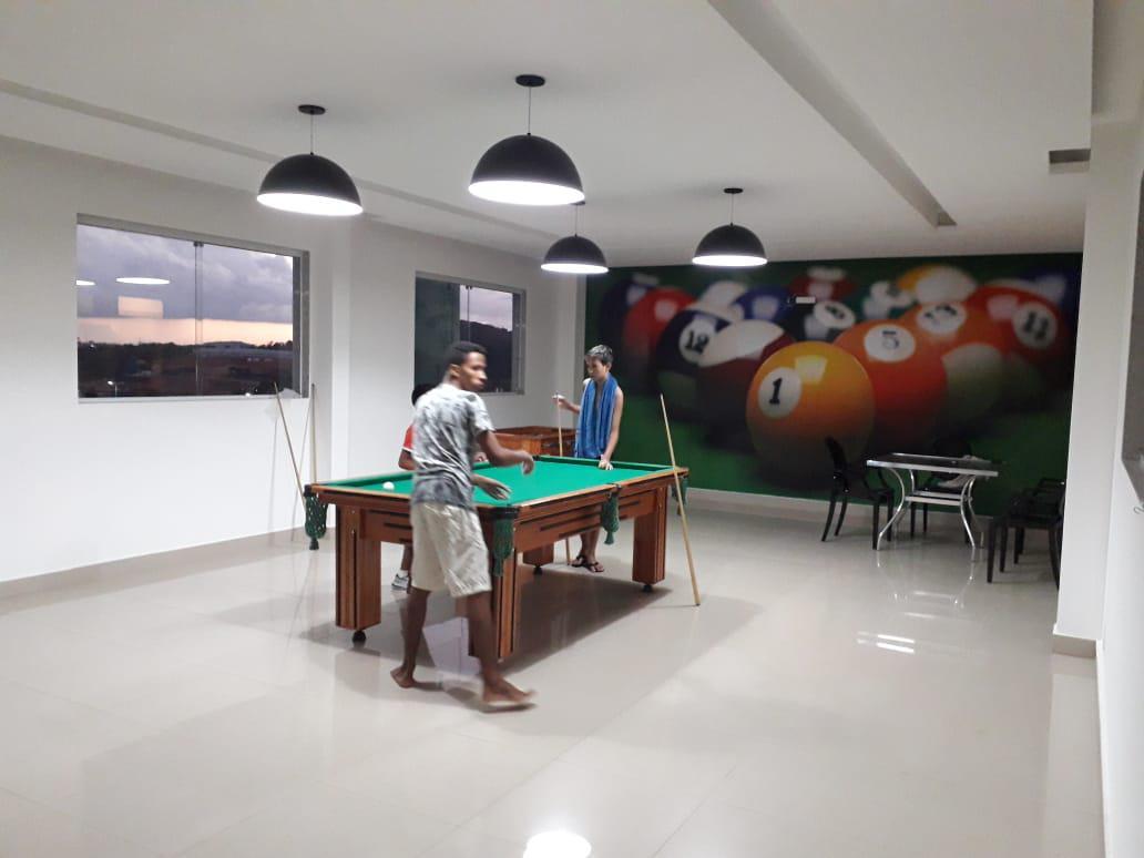 Prédio revestido em pintura texturizada, 01 vaga de garagem demarcada e descoberta, piscina, área de churrasqueira, salão de festa, espaço fitness, espaço kids.