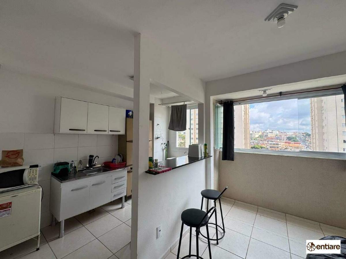 - Cozinha estilo americana com bancada e armários;