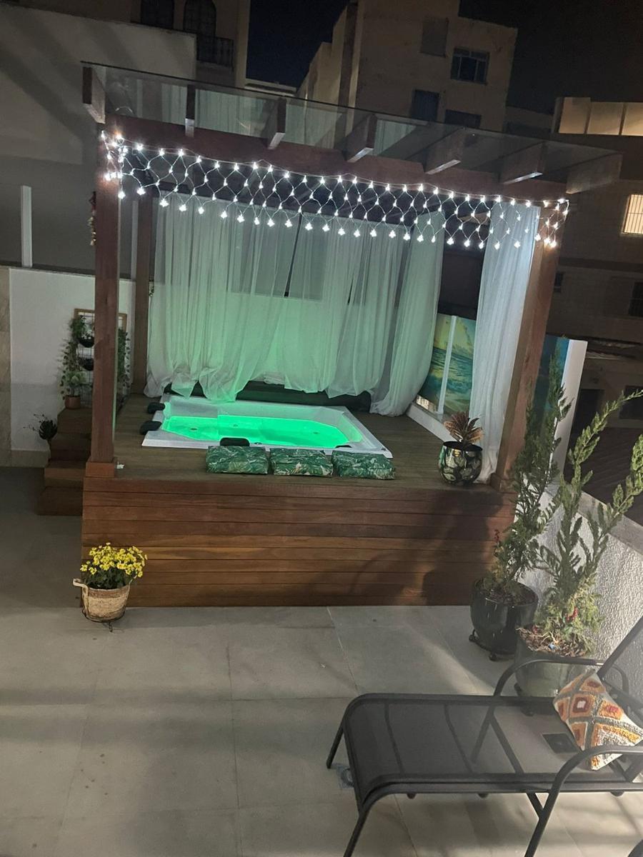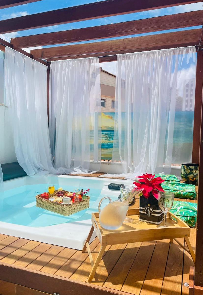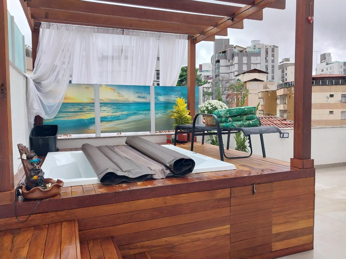 Área externa parte com cobertura em vidro, área gourmet, banheira com hidromassagem com aquecimento em deck de madeira, restante da área,descoberta; (vista panorâmica em toda área externa, condomínio com agua e gás individualizados.
