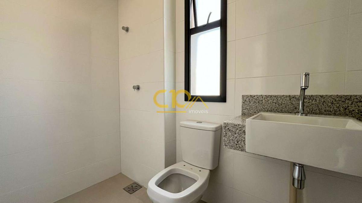 Banheiros (social e suíte) com acabamento premium em porcelanato e bancadas em granito.