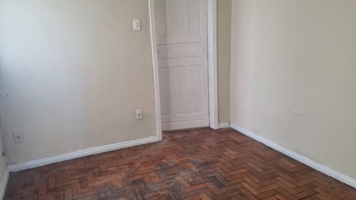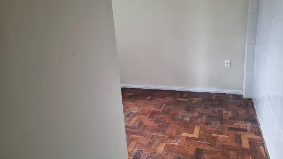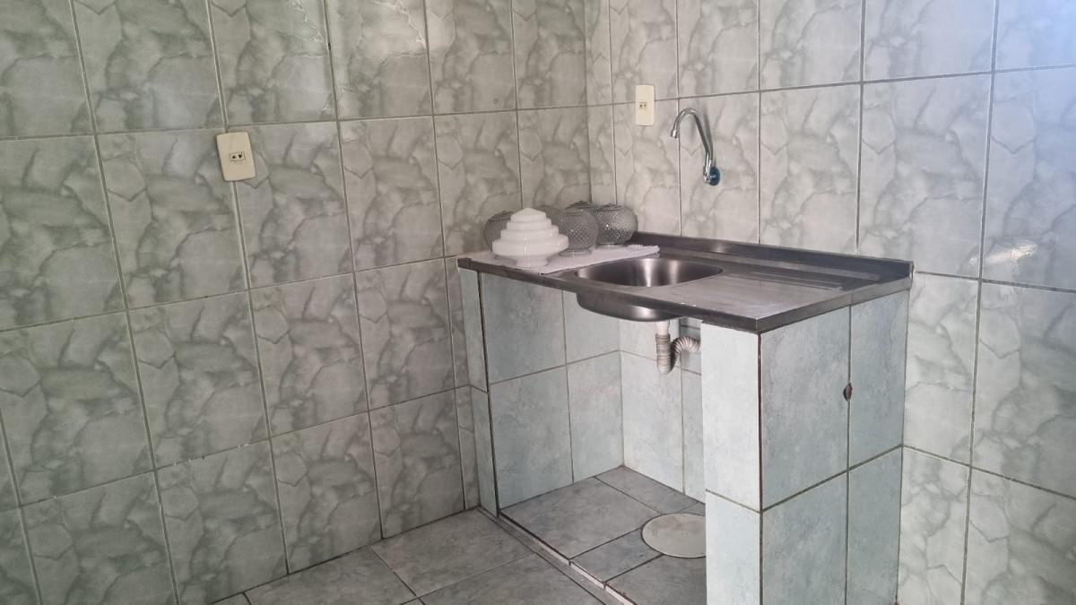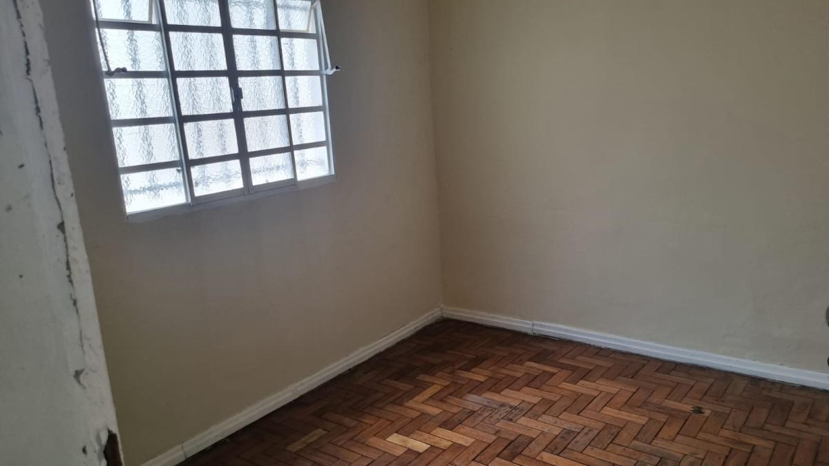 Casa de fundos, área com piso de cerâmica na entrada, 2 quartos sendo 1 suite e sala taqueados, cozinha, banheiro, área de serviço e cômodo de despejo..