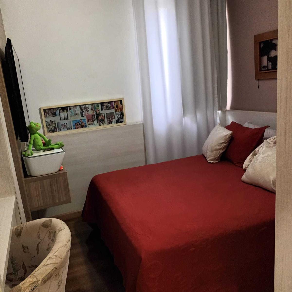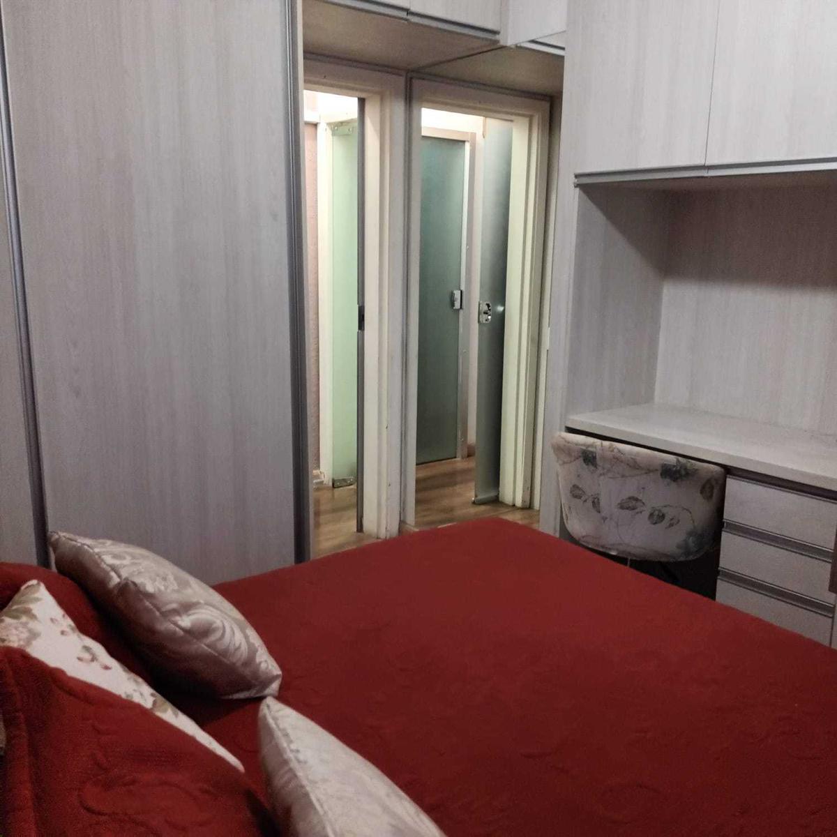 02 quartos sendo uma suíte, todos com armários planejados;