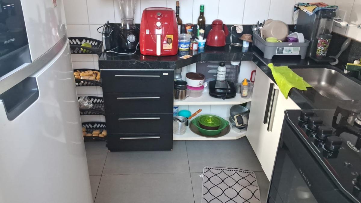 Cozinha com armários conjugada com a área de serviço.