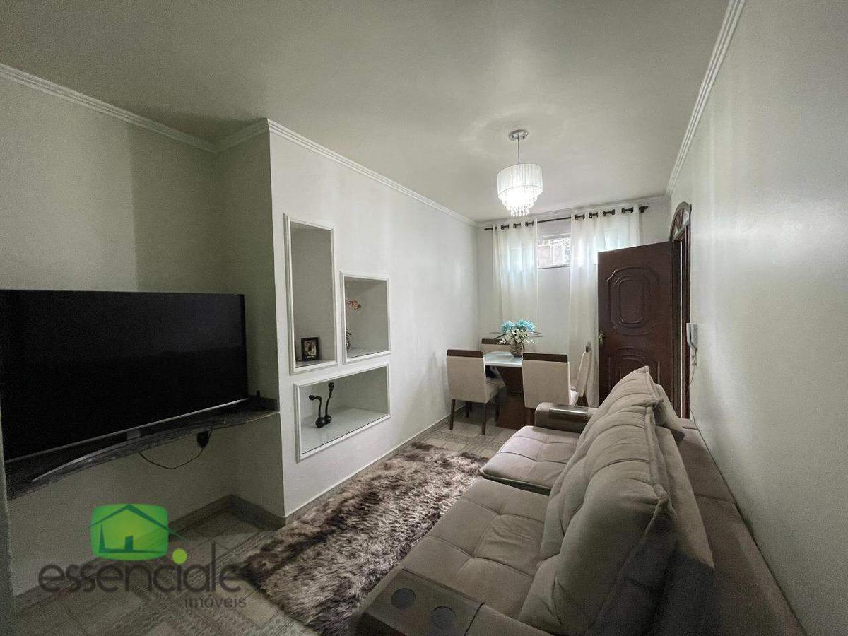 Apartamento primeiro andar térreo sem escada sendo 2 quartos com armários planejados, banho social com blindex, armário e espelho.