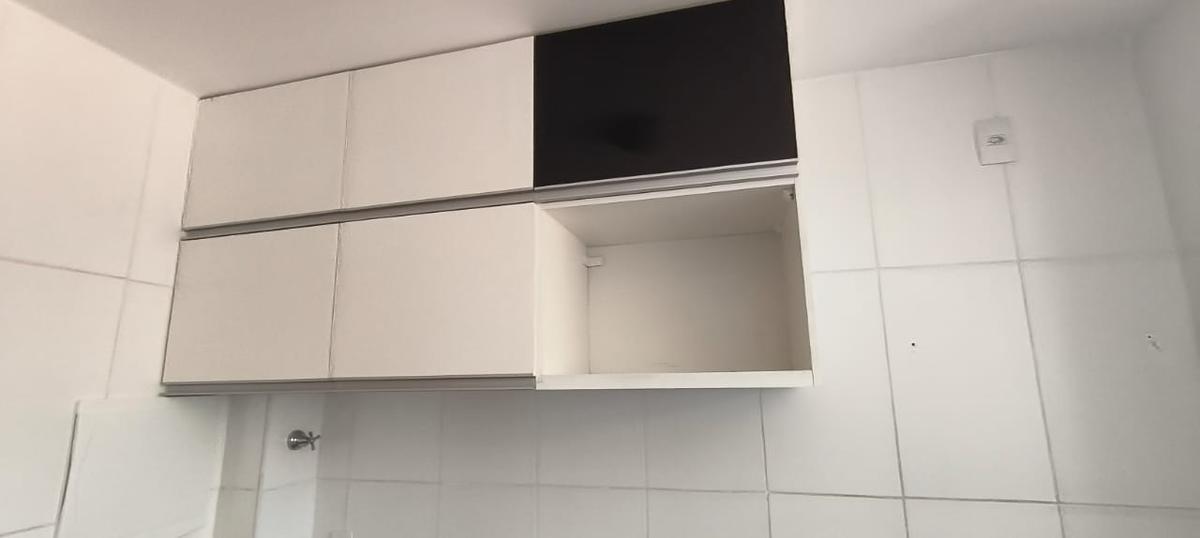 Apartamento 60,79 m2 de fundos, com vista, claro e arejado, composto de sala para 2 ambientes, piso porcelanato, varanda com porta de correr, 02 quartos com piso ceramica, (não possui armarios nos quartos), 02 banhos sendo 01 suite e outro social com bancadas granito, box de vidro, espelhos, armarios, cozinha com armários suspensos e no fechamento da bancada, bancada em granito, area de serviço separada da cozinha, fechamento com janelao de vidro.