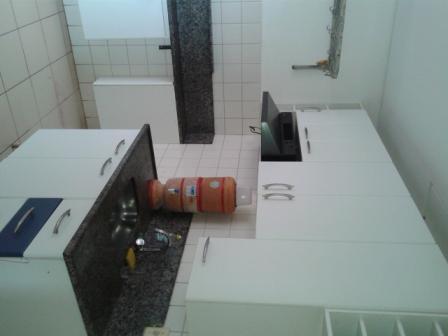 - Cozinha com armários, bancada em granito, piso em cerâmica;