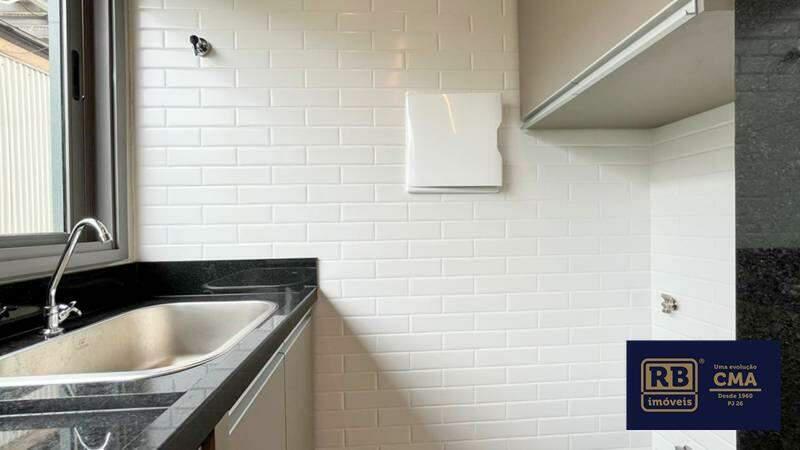 Cozinha funcional com bancada em granito e piso em porcelanato