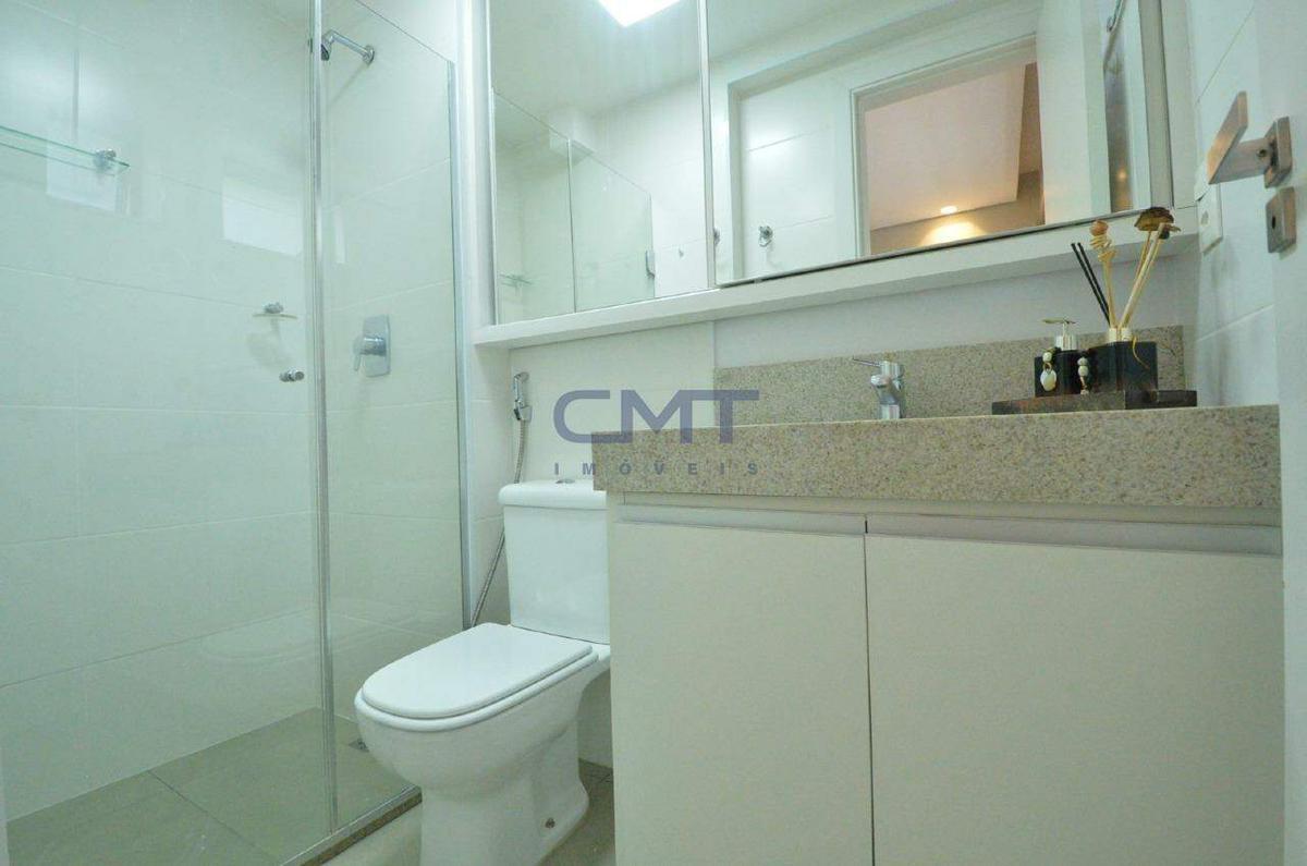 São 2 quartos, sendo 1 suíte. Todos os quartos contam com armários planejados e ar-condicionado instalado. Piso em porcelanato e janelas que garantem conforto térmico e acústico.