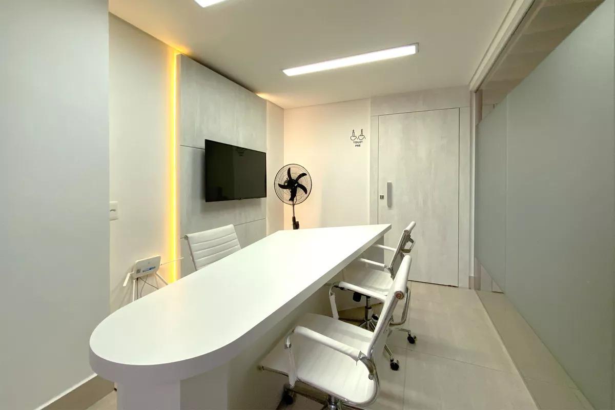 1 Sala ampla para dois ambientes, toda decorada, com piso em porcelanato, teto rebaixado e iluminação planejada