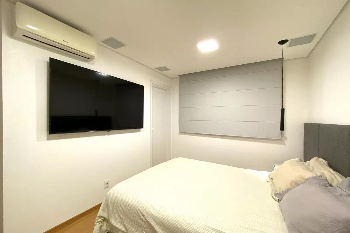 2 Quartos amplos, todos com piso em vinílico de madeira, teto rebaixado, iluminação planejada e armários, sendo duas suítes com bancada em granito, armários, espelho e box em blindex