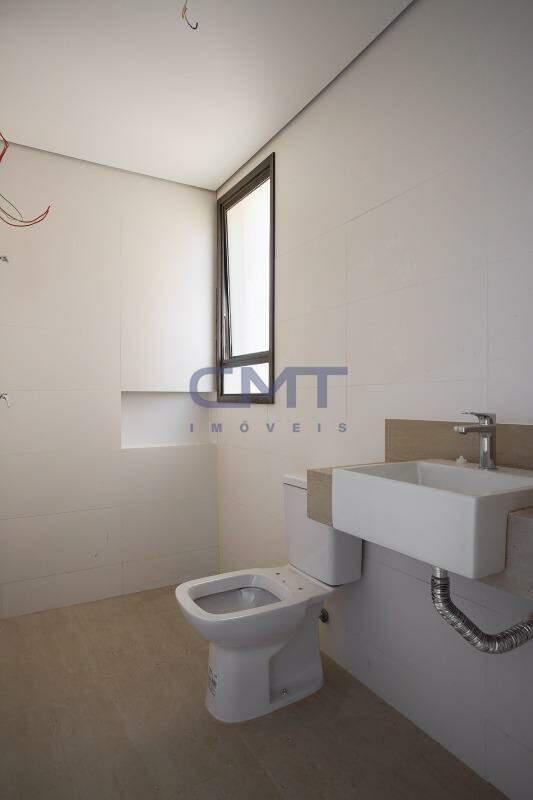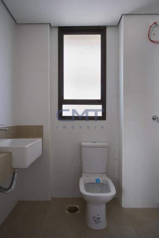 Sala para dois ambientes com piso em porcelanato e ampla janela, proporcionando melhor ventilação e luminosidade natural no interior do ambiente. Ambiente conta também com lavabo com piso em porcelanato e pia com cuba sobreposta.