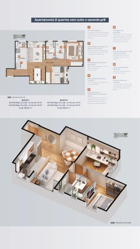 Modernidade sob medida. Para o hoje e para o futuro- 02 quartos com suíte e varanda grill.