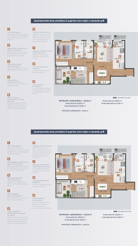 - Possibilidade de personalização futura das unidades, com integração da sala com a varanda.