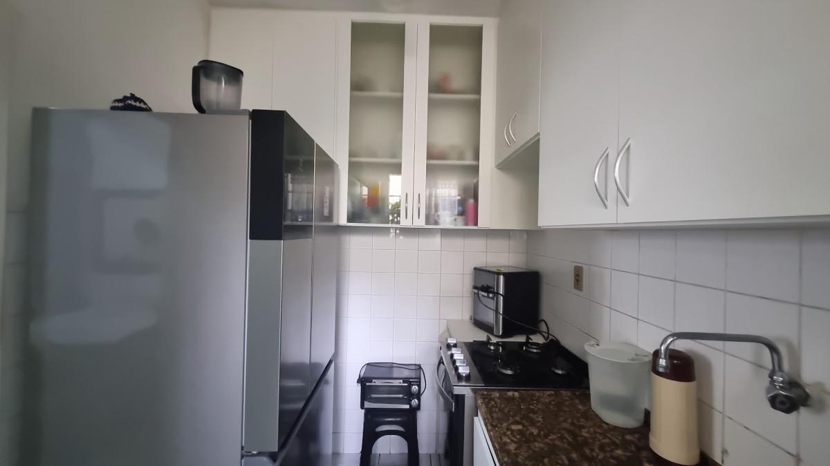 Composto de 2 quartos com piso em cerâmica, 1 sala com piso cerâmica com espaço para dois ambientes, 1 banheiro social com box e pia e armário sob bancada piso cerâmica e 1 cozinha com ármarios planejados em MDF branco em toda a cozinha e área de serviço com ármario e tanque, com 1 vaga de estacionamento. APTO claro e arejado, gradeado tanto nas janelas quanto na porta de entrada social, garantindo segurança e tranquilidade. O APTO esta no 2º andar, apenas um lance de escadas.