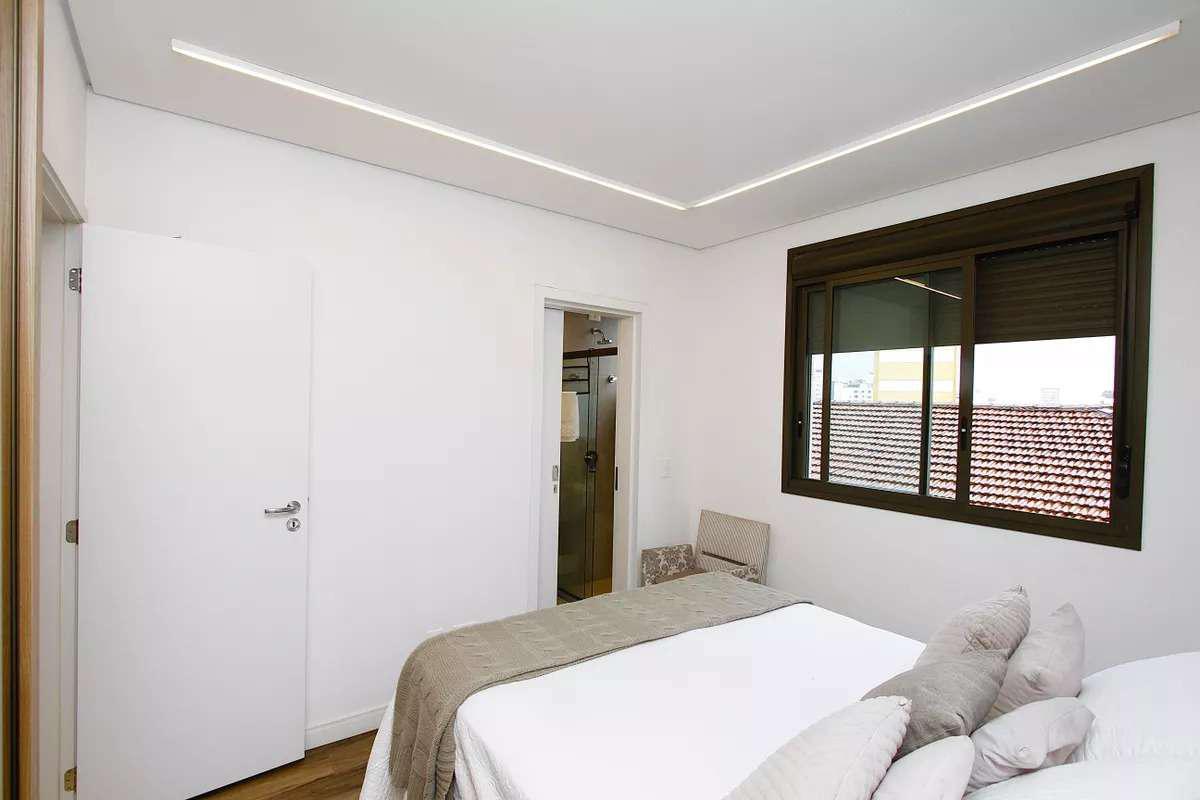 2 quartos com piso laminado, ambos suítes, sendo uma delas com armário planejado, além de tetos rebaixados com iluminação planejada.