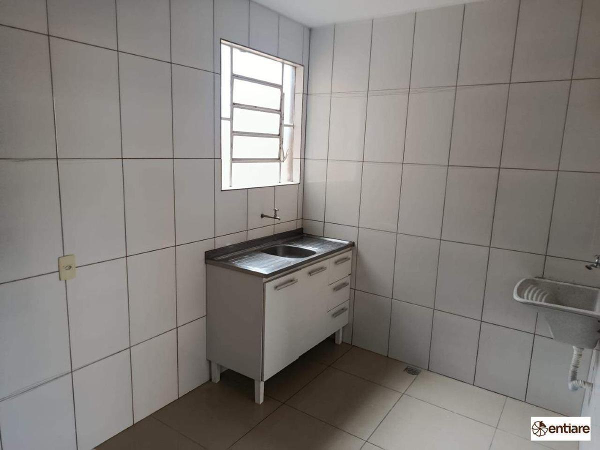 Cozinha com pia em inox e armário