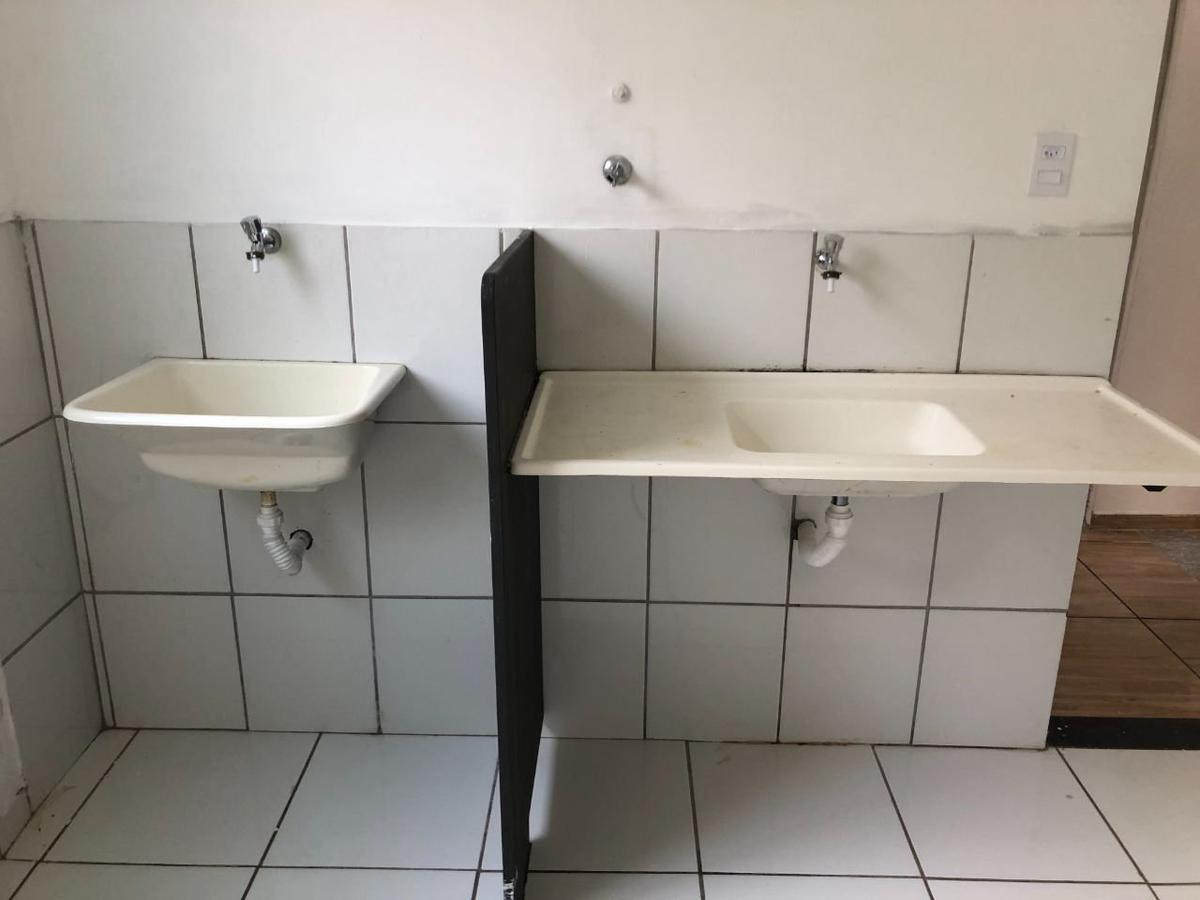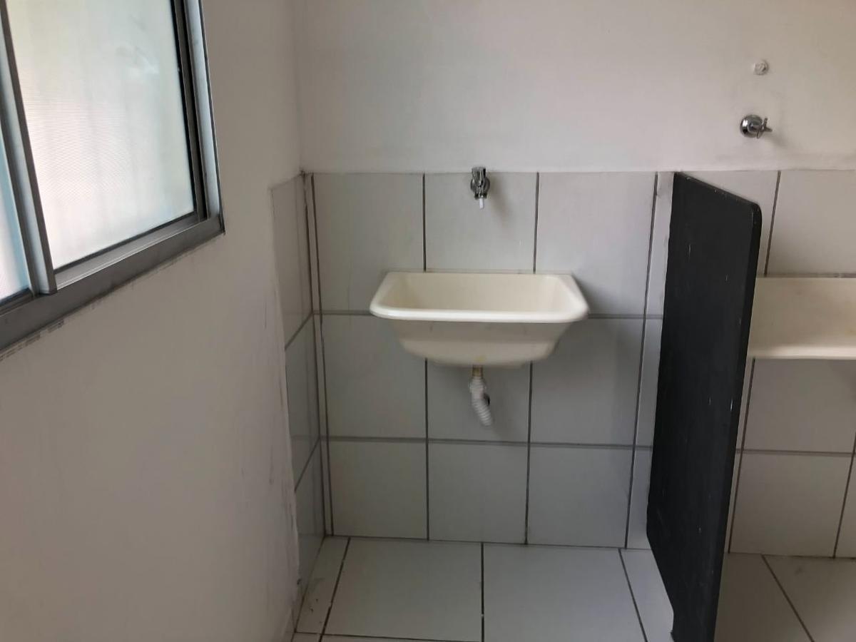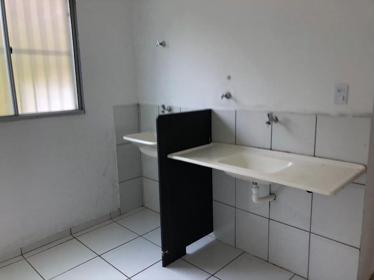 Apartamento com 2 quartos, sala ampla, cozinha, área de serviço e banheiro.