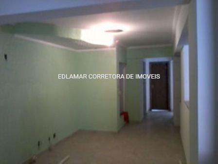 Apartamento de dois quartos grandes (sendo quarto de casal com sacada), sala para dois ambientes, cozinha e área de serviços.