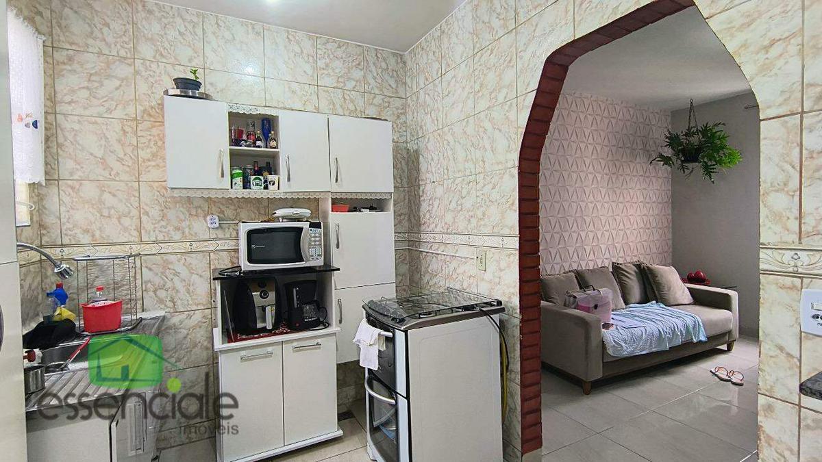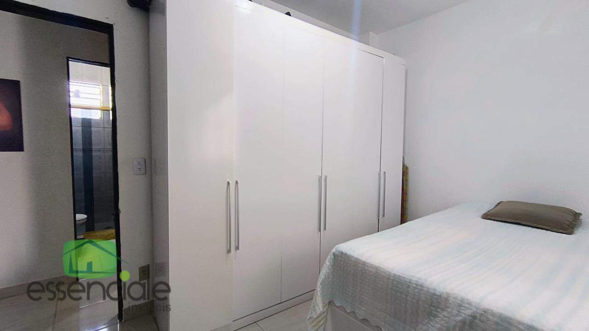 São dois quartos, sala para dois ambientes, cozinha com armários, banho social com box.