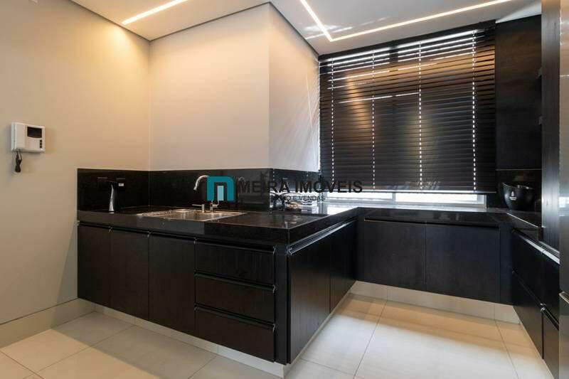 ¿ Cozinha funcional equipada com armários planejados, bancadas em granito, fogão cooktop e coifa de alto desempenho;