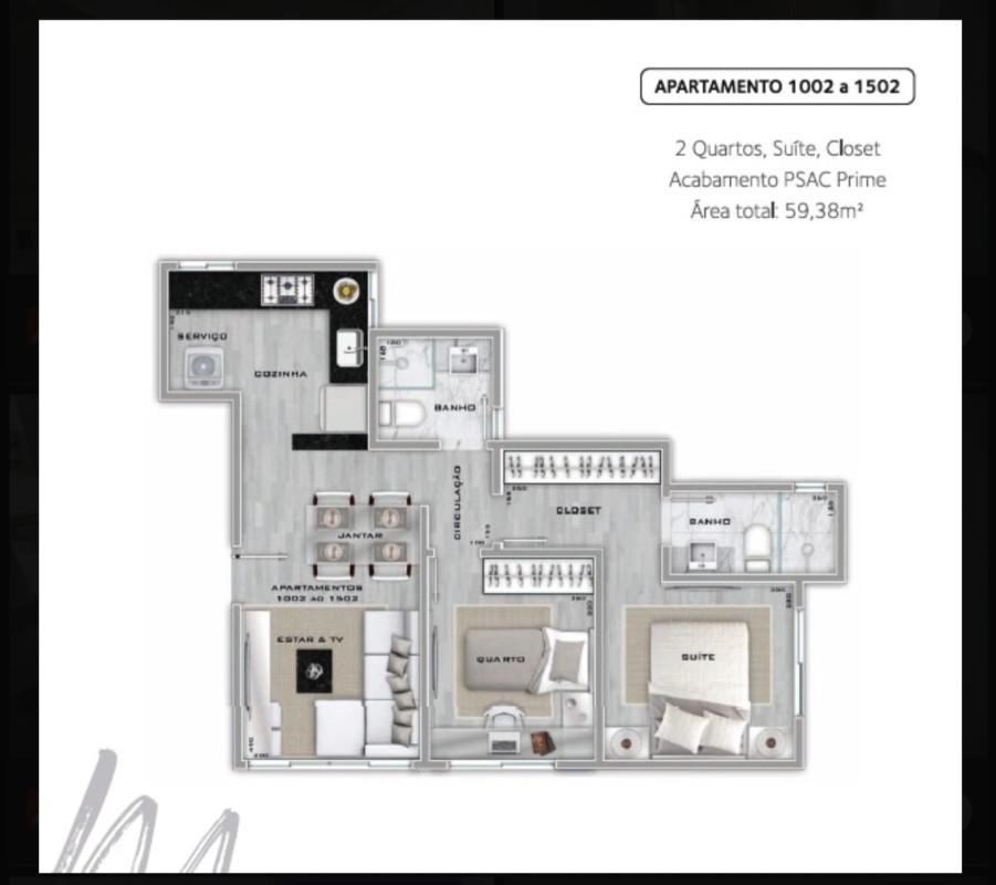 Apartamento 2 quartos , suite com closet , 2 vagas