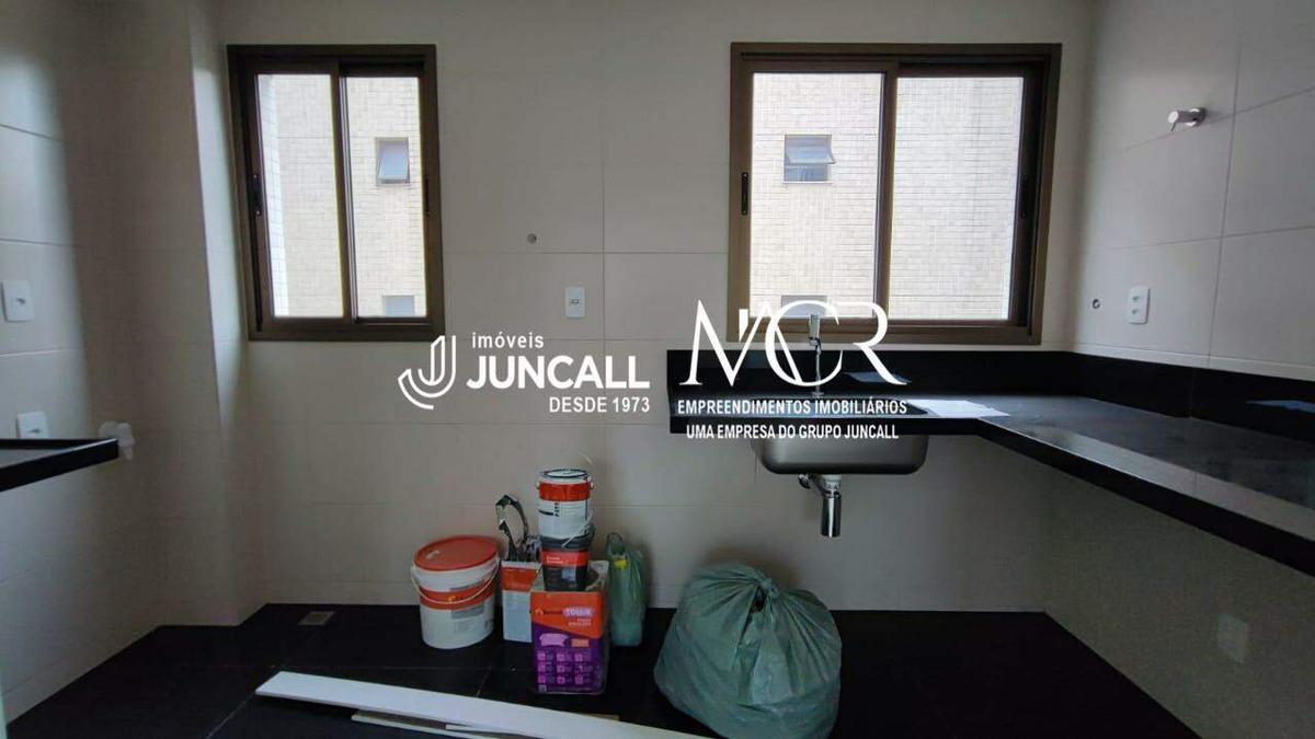 Cozinha com bancada e piso em granito, área de serviço integrada a cozinha.