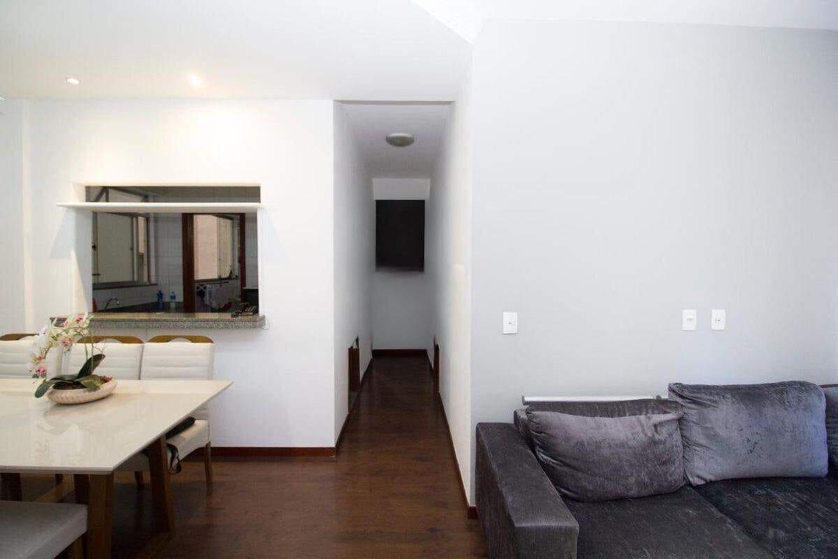 Apartamento com área de 60m², sala para 02 ambientes, 02 quartos, sendo 01 suíte, banho social, cozinha americana com armários e área de serviço.