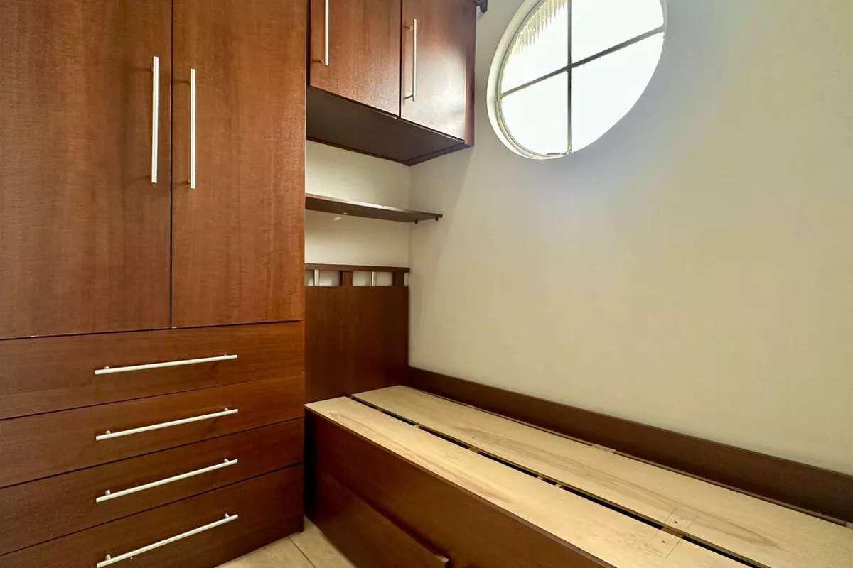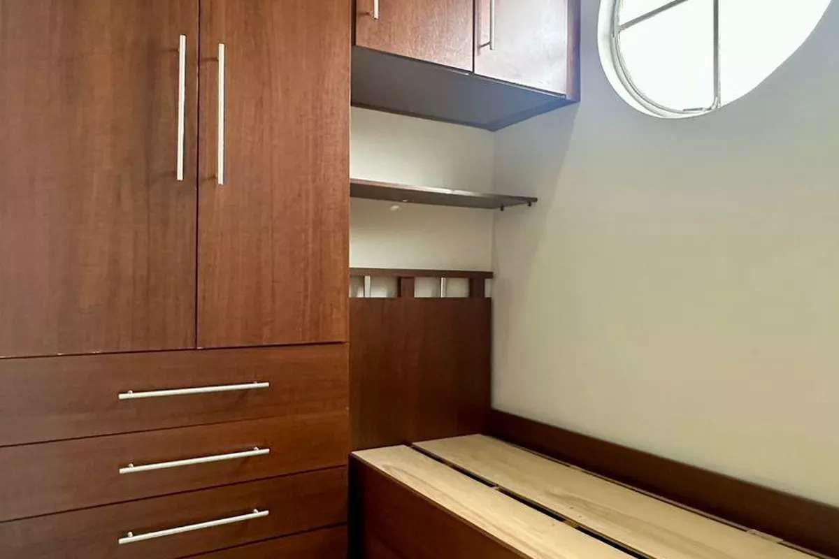 2 quartos espaçosos, todos com piso em porcelanato, sendo dois com armários