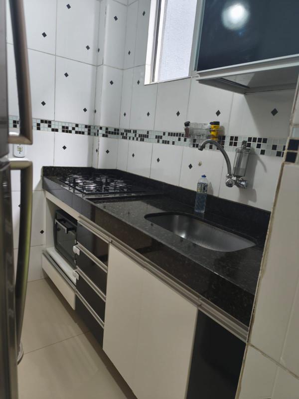 Apartamento 02 quartos com armários, banho social com box blindex e armário, sala para 02 ambientes, cozinha com bancada em granito e armários planejados, area de serviço, 01 vaga de estacionamento.