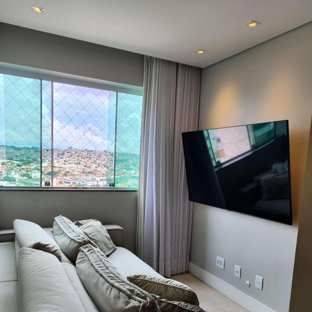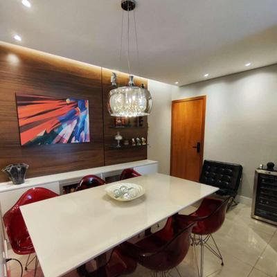 Sala em 02 ambientes com piso em porcelanato, rebaixamento em gesso, sistema de iluminação inteligente em todo o apartamento,
